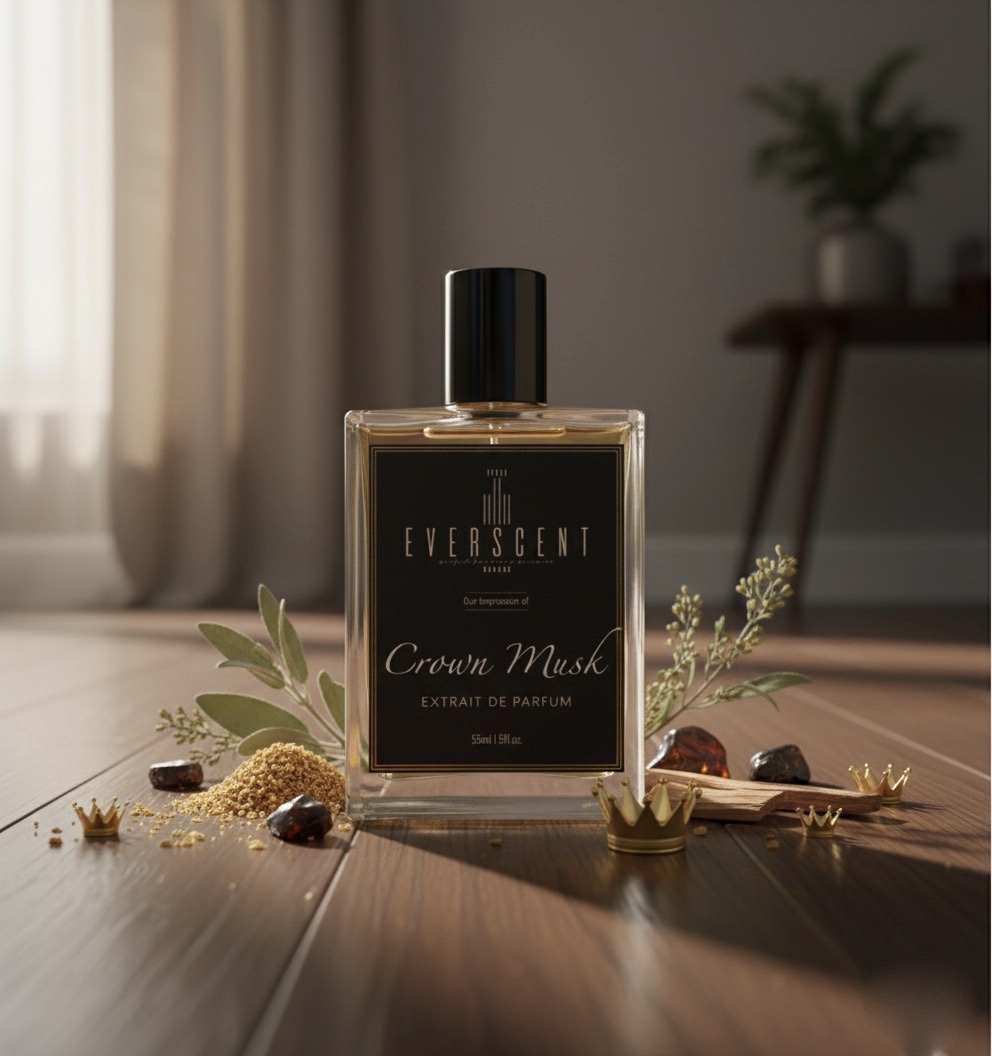 Crown Musk is elegance in its purest form — a fragrance that wears like silk and lingers like memory. It opens with a delicate bloom of rose, honeysuckle, and ylang-ylang, soft and radiant. The heart reveals a calming touch of lavender and rosemary, balanced by the creamy warmth of sandalwood. Finally, the base settles into the purity of musk, smooth and enduring, leaving behind a trail that whispers sophistication.