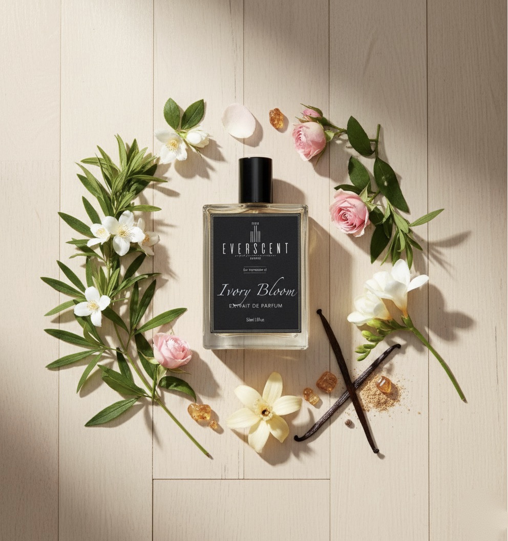 Ivory Bloom a sensual dance of softness and strength — where delicate florals meet creamy woods and warm amber.