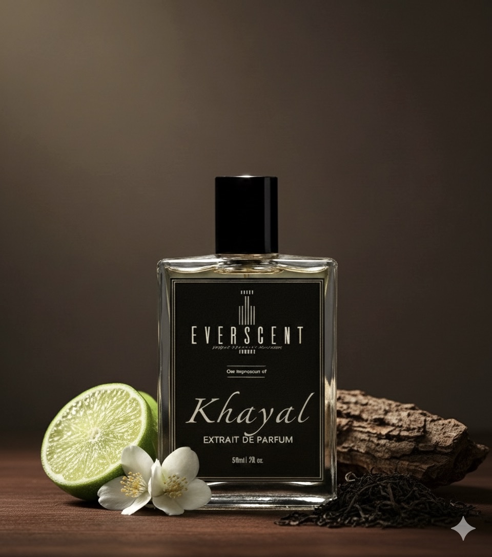 Khayal is a bright and sophisticated fragrance that opens with sparkling citrus notes of bergamot and neroli, softened by green tea and warmed with ginger. A smooth blend of musk and ambergris lingers on the skin, creating a refined and modern scent that feels both uplifting and elegant. Perfect for those who seek freshness with depth, this fragrance embodies creativity and confidence.
