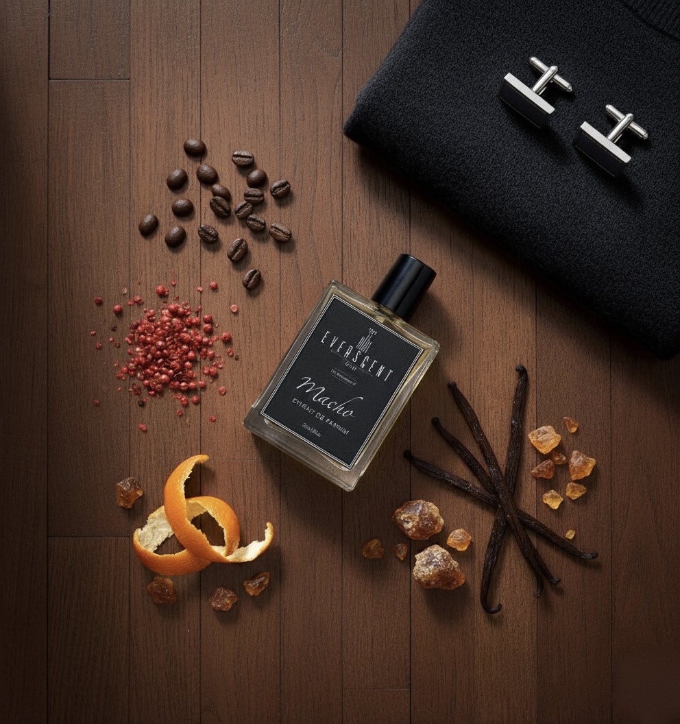 Macho opens with a burst of citrus brilliance — mandarin orange and bergamot layered over crisp green notes — evoking freshness and vitality. As it unfolds, a spicy heart of pepper, delicate florals, and aromatic cardamom adds depth and intrigue. The base is where warmth takes over: smooth vanilla, guaiac wood, and sandalwood fuse with amber and musk, creating a lingering trail that’s both magnetic and comforting.