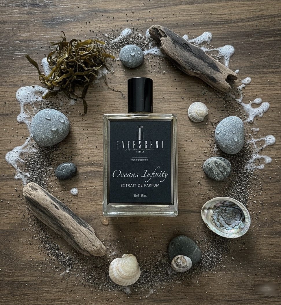 A scent born from the sea — Ocean’s Infinity where bergamot and lemon glimmer like sunlight over calm waters. The heart drifts into seaweed, calone, and hedione, capturing the cool whisper of ocean air and the rhythm of the waves. As it settles, musk, ambroxan, and cedar wrap the skin in a soft, lingering warmth that feels like the shore after sunset.