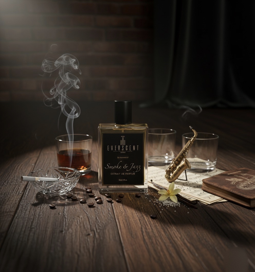 Smoke & Jazz opens with a spark of Pink Pepper, Neroli, and Lemon, an intoxicating brightness that gives way to the warmth of Rum and Vetiver, grounded by the herbal sophistication of Clary Sage. As it settles, the scent deepens into rich Tobacco Leaf and Vanilla Bean, wrapped in the resinous depth of Styrax, creating a smooth, addictive trail.