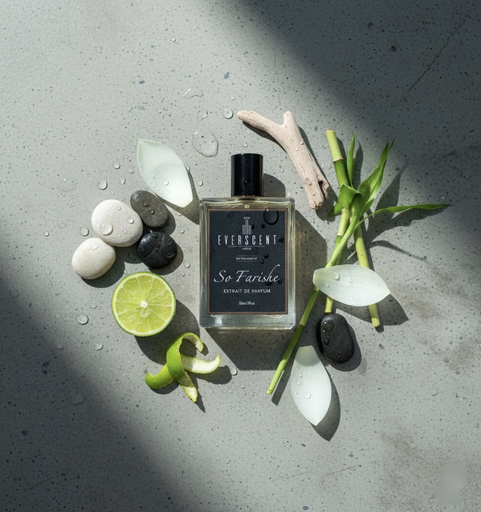 So Fraishe opens with a luminous burst of Yuzu, Lemon, Bergamot, and Mandarin Orange, blended with the herbal coolness of Cypress, Sage, and Coriander. The heart blooms into an aromatic accord of Blue Lotus, Lily-of-the-Valley, and Geranium, delicately warmed by Nutmeg, Saffron, and Cinnamon. As it settles, the fragrance deepens into a tranquil base of Tahitian Vetiver, Sandalwood, Amber, Musk, and Tobacco, leaving behind a sophisticated trail — both airy and grounded.