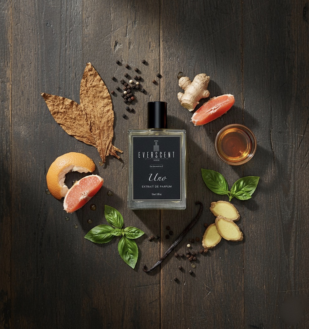 Uno is a fragrance for those who lead without raising their voice — fresh grapefruit and basil open with clarity, melting into the spice of ginger and cardamom. As it settles, amber and tobacco take over, leaving a trail that’s deep, sensual, and unmistakably self-assured. A perfect balance of freshness and warmth, Uno captures the essence of modern sophistication in a single breath.