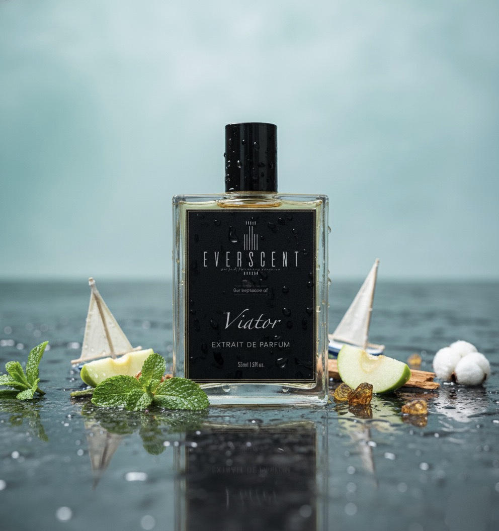 Viator is a crisp, uplifting fragrance that captures the purity of nature. Viator opens with the bright freshness of green leaves and juicy apple, evoking the feeling of a cool morning breeze. At its heart, soft lotus and delicate mimosa bloom gently, adding a touch of floral serenity. As it settles, warm amber, cedar, and oakmoss create a smooth, musky base — serene, clean, and effortlessly elegant.